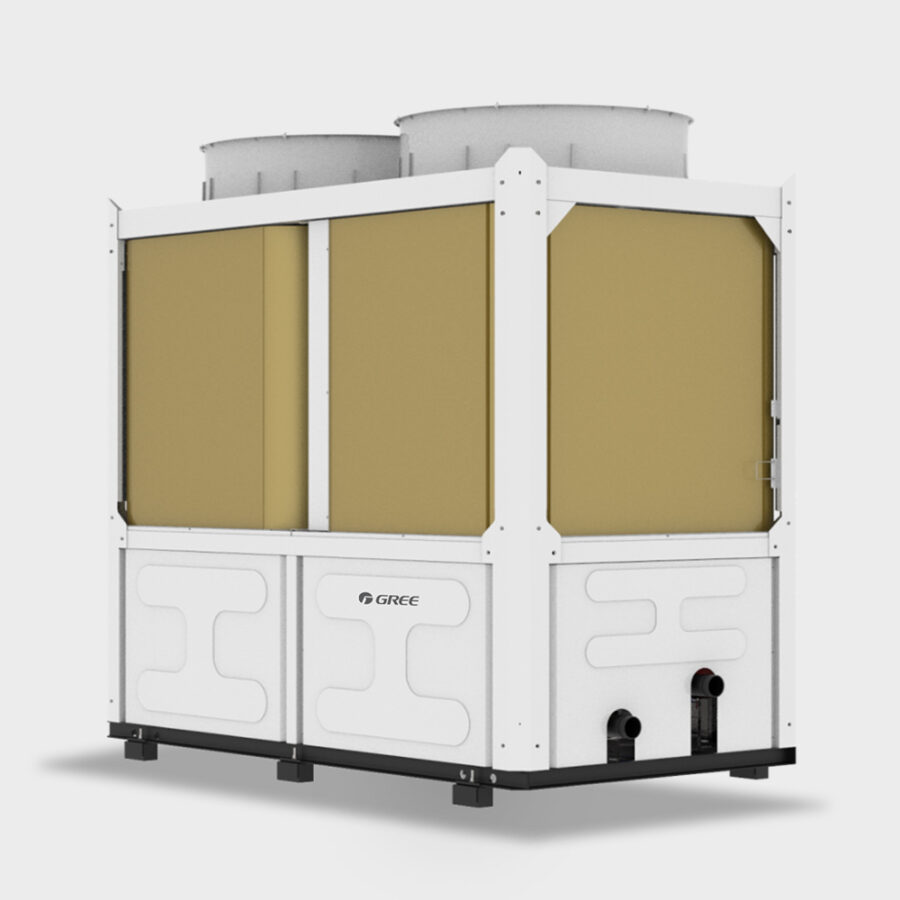 Gree inverteres kompakt léghűtéses, hőszivattyús moduláris 100 kW kültéri folyadékhűtő R32